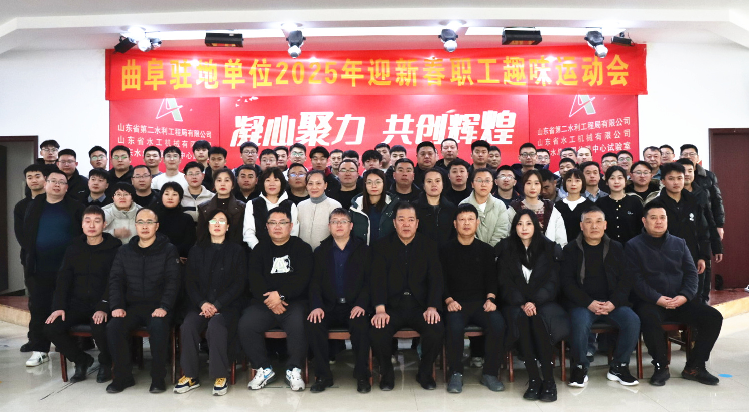 祥龙回首留胜景,金蛇起舞贺新程。为丰富干部职工文化生活,鼓舞广大干部职工精神斗志,增强公司凝聚力和向心力,激发党员干部干事创业的热情,1月24日,山东水总驻曲各公司、部门全体干部职工喜气洋洋、欢聚一堂、欢度佳节、共话友谊,举办了一场别开生面、兴趣盎然的“凝心聚力共创辉煌”2025年迎新春职工趣味运动会。